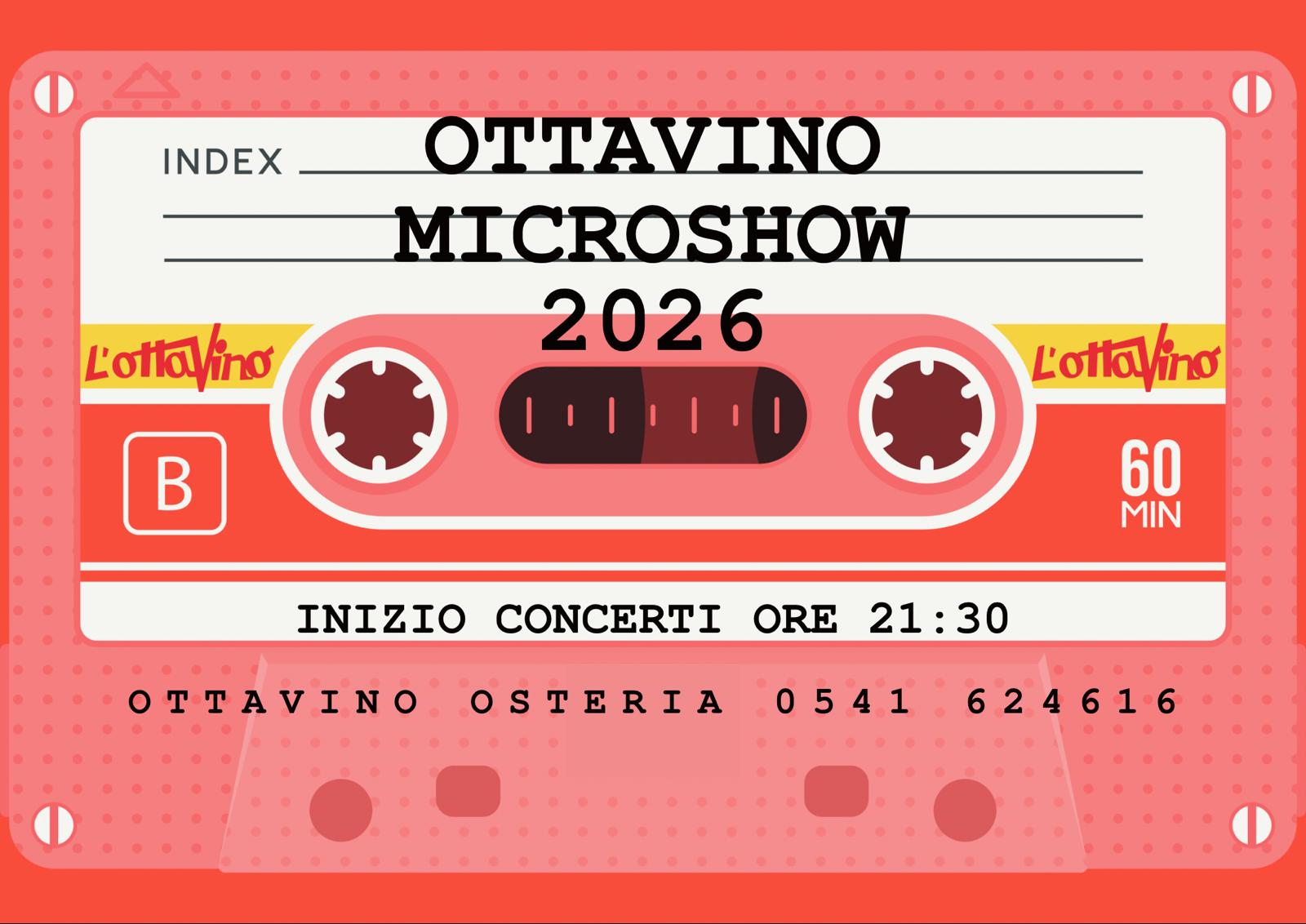 L’Ottavino MicroShow è felice di presentarsi per il suo secondo anno con un bellissimo programma di 10 serate di musica e spettacolo che daranno vita al nostro inverno sul palco dell’Ottavino osteria quotidiana. Anche quest’anno il nostro direttore artistico Antonio Ramberti ha creato un programma di qualità con artisti unici nel panorama italiano. Il programma inizierà Mercoledì 14 Gennaio con Ruben Camillas, musicista, autore e performer unico nel panorama della scena indipendente italiana. Proseguirà, il 21 Gennaio, con Davide Dudu Morandi (cantante dei Modena City Ramblers) e il suo gaucho Iosonomoka con il loro progetto “Cuntafol”, un racconto di storie nel dialetto dell’appennino modenese. Memorie e racconti in musica e parole tra la via Emilia e l’oceano Atlantico, storie di adolescenza e di resistenza, di ribellione e di speranza. Chiuderà il mese di Gennaio, mercoledì 28, Daniele Maggioli, notissimo artista riminese che presenterà il suo nuovo album “Oltre lo Specchio”, un album intimista e visionario che nasce dal bisogno di raccontare il nostro tempo e le sua pressioni. “In Oltre lo Specchio c’è il suono inafferrabile della verità. Oltre lo specchio nulla è come appare: città, occhi, voci. Tutto è inedito, mai visto…”